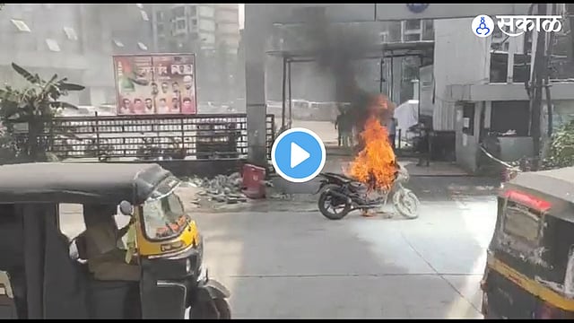 डोंबिवली : कल्याण शीळ रोडवर भर दुपारी एका चालत्या दुचाकीने अचानक पेट घेतल्याची घटना घडली. कल्याण कृषी उत्पन्न बाजार समितीच्या समोरच या गाडीने पेट घेतल्याने नागरिकांची एकच धांदल उडाली. घटनेची माहिती मिळतात तातडीने पोलीस तसेच अग्निशमन दलचे कर्मचारी घटनास्थळी दाखल होत या आगीवर नियंत्रण मिळवले.