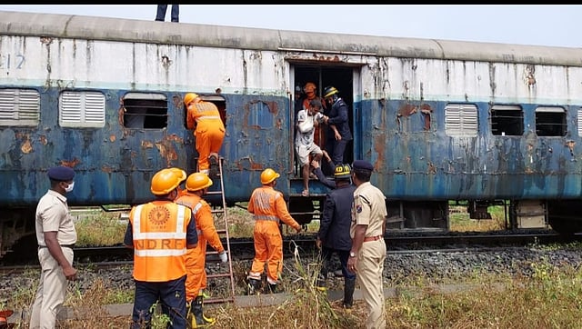 डबा छतावरून आणि खिडक्यांमधून कापला आणि नंतर प्रवाशांना बाहेर काढण्यासाठी एनडीआरएफ जवान डब्यात घुसले. आग विझवण्यासाठी रेल्वे कर्मचाऱ्यांनी अग्निशामक यंत्रांचा वापर केला. रेल्वे रुग्णवाहिका सकाळी 10.58 वाजता घटनास्थळी पोहोचली आणि अग्निशमन दल सकाळी 11.05 वाजता आले. रेल्वे संरक्षण दलानेही ड्रिलमध्ये भाग घेतला आणि प्रवाशांना बाहेर काढण्यासाठी एनडीआरएफला मदत केली. अग्निशमन दलाच्या जवानांनी डब्यात शिरून आग पूर्णपणे विझवली.