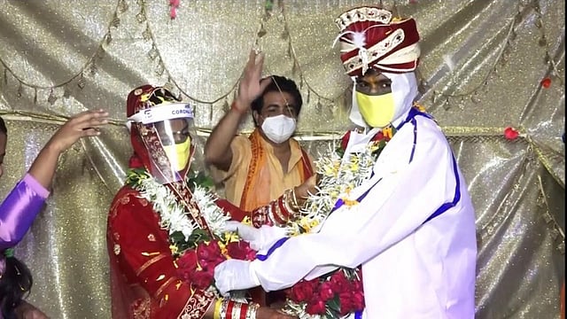 नालासोपारा पूर्वेकडे राहणारा 27 वर्षीय संजय गुप्ता आणि बबिता गुप्ता यांचे एप्रिल महिन्यात लग्न ठरले. दरम्यान लॉकडाऊन असल्याने कुटुंबियांची चिंता वाढली, परंतु यावर दोन्ही पक्षांनी तोडगा काढला. केवळ मर्यादित लग्नाचे निमंत्रण देत आळस सामाजिक दुरी, मास्क यासह अन्य नियम पाळण्याचे ठरले. विवाह सोहळ्यात नावरदेवाने सुरक्षेची पूर्ण काळजी घेता यावी म्हणून पीपीई किट घातला. नववधूने देखील तोंडावर मास्क, शिल्ड लावले होते. या विवाह सोहळ्यात केवळ 25 ते 30 जणांची उपस्थिती होती. कोरोना असल्याने घरीच लग्न उरकले कोरोनाचा पार्श्वभूमीवर सरकारने घालून दिलेल्या नियमाचे पालन करण्यात आले. नागरिकांच्या सुरक्षेची काळजी घेतली गेली असे नवरदेव संजय गुप्ता यांनी सांगितले.