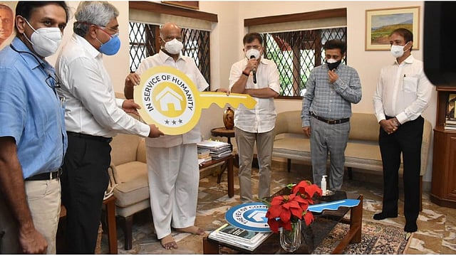 मुंबई: कॅन्सर रुग्णांच्या नातेवाईकांसाठी 'म्हाडा’च्या १०० घरांच्या चाव्या सुपूर्द करण्याचा कार्यक्रम रविवारी राष्ट्रवादी काँग्रेसचे राष्ट्रीय अध्यक्ष शरद पवार यांच्या हस्ते पार पडला. महाविकास आघाडी सरकारचे गृहनिर्माण मंत्री जितेंद्र आव्हाड यांनी उपक्रम म्हाडा हाऊसिंग अंतर्गत हाती घेतला होता. या उपक्रमाचा शुभारंभ आज झाला. यावेळी टाटा कॅन्सर हॉस्पिटलचे प्रमुख डॉ. बडवे यांच्याकडे या चाव्या सुपूर्द करण्यात आल्या. शरद पवार यांनी चाव्या सुपूर्द करताना तेथे जितेंद्र आव्हाड आणि डॉ. बडवे यांच्यासह डॉ. श्रीखंडे, गृहनिर्माणचे सचिव श्रीनिवासन, म्हाडाचे मुख्य कार्यकारी अधिकारी अरुण डिगीकर हेदेखील उपस्थित होते. (NCP Chief Sharad Pawar gives Keys of 100 flats to Tata Hospital under Mhada Housing Schemes for cancer patients relatives)