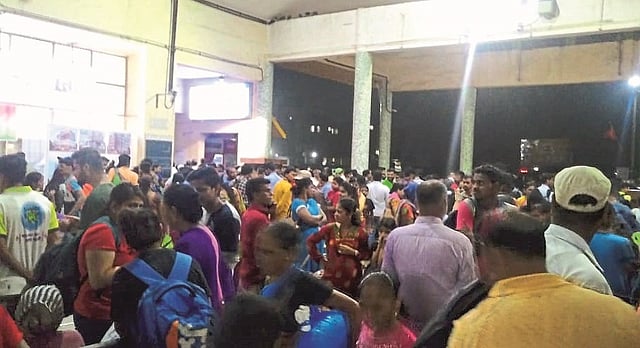गणेश विसर्जनानंतर मुंबईकडे परतण्यासाठी मोठ्या संख्येने प्रवासी खेड स्थानकात आले होते. दुपारी मडगावहून मुंबईला जाणारी मांडवी एक्स्प्रेस थांबा असूनही खेड स्थानकात न थांबताच पुढे रवाना झाली. गाडीचे आरक्षण असणाऱ्या प्रवाशांनी रेल्वेस्थानकात गोंधळ घातला. कोकणातून मुंबईच्या दिशेने येणाऱ्या गाड्या आधीच एक ते दीड तास उशिराने धावत होत्या. त्यामुळे प्रवाशांची खेड स्थानकात गर्दी झाली होती. मांडवी एक्स्प्रेसला 3 वाजून 56 मिनिटांनी खेड स्थानकात थांबा आहे. मात्र, आज ती खेड स्थानकात न थांबता पुढे गेली. परिणामी संतप्त प्रवाशांनी एकच गोंधळ घातला. अखेर अर्धा-पाऊण तासाने मागून हॉलिडे एक्स्प्रेस येत असल्याची उद्घोषणा झाली. त्यात अतिरिक्त डबे असल्याचे कोकण रेल्वे प्रशासनाने सांगितले. प्रवाशांना काहीसा दिलासा मिळाला; मात्र हॉलिडे एक्स्प्रेस स्थानकावर आल्यावर दरवाजे न उघडल्याने प्रवाशांचा पुन्हा उद्रेक झाला.