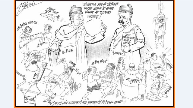 मुंबई- आज जर लोकमान्य टिळक असते तर ते गोपाळ गणेश आगरकरांना म्हणाले असते, की आजची परिस्थिती पाहता मला तुमचंच म्हणणं पटतंय; प्रथम समाज सुधारणा हव्यात मग स्वातंत्र्य! अशा आशयाचं व्यंगचित्र मनसे अध्यक्ष राज ठाकरे यांनी आज (ता. 21) रेखाटलं आहे.