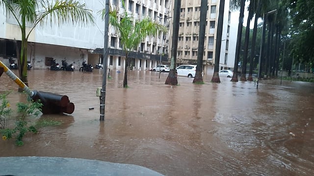 मुसळधार पावसामुळे सीबीडी-बेलापूर येथील सेक्टर 4 च्या बाजारपेठेतील सर्व दुकानांमध्ये, एनएमएमटी बस डेपोसमोरील रहिवासी सोसायटीतील घरांमध्ये पाणी घुसले होते.