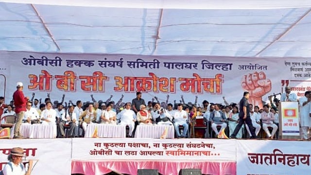 पालघर जिल्ह्यात ओबीसीची संख्या शून्य दाखविण्यात आल्याने समाजाचे राजकीय आरक्षण रद्द करण्यात आले आहे. ओबीसींना आरक्षण मिळाले पाहिजे व जातनिहाय जनगणना व्हावी, या मागणीसाठी ओबीसी हक्क संघर्ष समितीने आज पालघर शहरामध्ये मोर्चाचे आयोजन केले होते. मात्र प्रखर ऊन असल्यामुळे मोर्चा रद्द करून पालघर जिल्हाधिकारी कार्यालयाजवळील सिडको मैदानावर सभा घेण्यात आली. या वेळी सभेला भुजबळ संबोधित करीत होते.