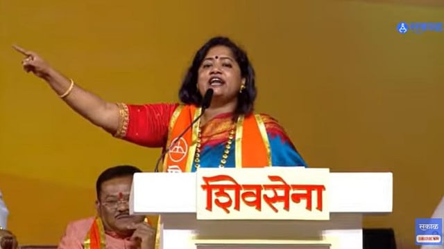 "छत्रपती शिवाजी महाराजांचं आराध्य दैवत असणारी आई तुळजाभवानी. महाराष्ट्राची आई तुळजाभवानीबद्दल अचकटकविचकट हावभाव करुन बोलणारी ही बाई जर उद्धव ठाकरे तुमच्या शिवसेनेचा चेहरा असेल तर थू तुमच्या जिंदगानीवरती. (Marathi Tajya Batmya)