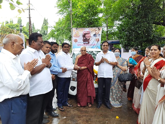 उल्हासनगर : श्रीलंकेतून (shrilanka) 54 वर्षांपूर्वी येऊन गेल्या पाच दशकापासून उल्हासनगरात (Ulhasnagar) धम्मप्रचाराची धुरा सांभाळणारे आणि अनेक वर्षांपासून महामहिंद इंटरनॅशनल धम्मदूत सोसायटी या शैक्षणिक संस्थेचे अध्यक्ष पद भूषवणारे भन्ते डॉ.आनंद महाथेरो (Dr aanand mahathero) यांना त्यांच्या वाढदिवसानिमित्त शिवसेनेचे शिवसेनेचे अंबरनाथ विधानसभेचे आमदार डॉ.बालाजी किणीकर (dr balaji kinikar) यांनी वॅगणार कारची गिफ्ट दिली आहे.भन्तेजींच्या 74 व्या वाढदिवसानिमित्त डॉ.किणीकर यांनी त्यांना वॅगणार कारची अनपेक्षित गिफ्ट दिल्याने डॉ.किणीकर यांच्यावर सर्व स्तरातून कौतुकाचा वर्षाव होऊ लागला आहे.