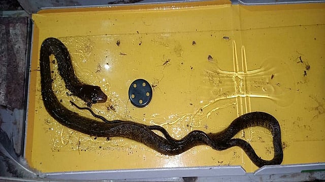 मुंबई : उंदीर पकडण्यासाठी लिफ्ट मध्ये ठेवलेल्या रॅट ब्ल्यू पॅड वर चक्क साप चकटल्याचा धक्कादायक प्रकार मुलुंड येथील एका कंपनीच्या आवारात घडला. त्यामुळे कामगारांमध्ये एकच धावपळ झाली. मुलुंड येथील एल बी एस मार्गावरील एका खासगी कंपनी मध्ये उंदरांचा उपद्रव वाढला आहे. उंदरांचा बंदोबस्त करण्यासाठी रात्री उशिरा कंपनीच्या लिफ्ट मध्ये उंदीर पकडण्याचे रॅट ब्ल्यू पॅड ठेवले. सकाळी कंपनीच्या सुरक्षा रक्षकाने लिफ्ट मध्ये येऊन जे पाहिले ते पाहून त्याची बोबडीच वळाली. कारण उंदीर पकडण्यासाठी लिफ्ट मध्ये ठेवलेल्या रॅट ब्ल्यू पॅड वर चक्क साप चिकटला होता.