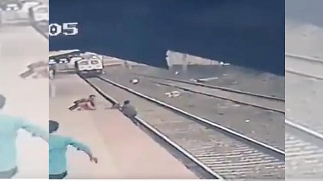 सध्या सोशल मीडियावर व्हायरल होत असलेला व्हिडीओ १७ एप्रिलचा असून संध्याकाळी ५ वाजता ही घटना घडली आहे. एक अंध महिला आपल्या लहान मुलाला घेऊन वांगणी स्थानकातून जात होती. याचवेळी या चिमुकल्याचा तोल जाऊन तो प्लॅटफॉर्मवरुन थेट रेल्वे रुळावर कोसळला. याच दरम्यान, समोरुन एक धावती गाडी येत होती. यावेळी परिस्थितीचं भान राखत सेंट्रल रेल्वे मुंबई विभागाचे पॉइट मॅन मयुरेश शेळके यांनी तात्काळ चिमुकल्याच्या दिशेने धाव घेतली आणि त्याचे प्राण वाचवले.