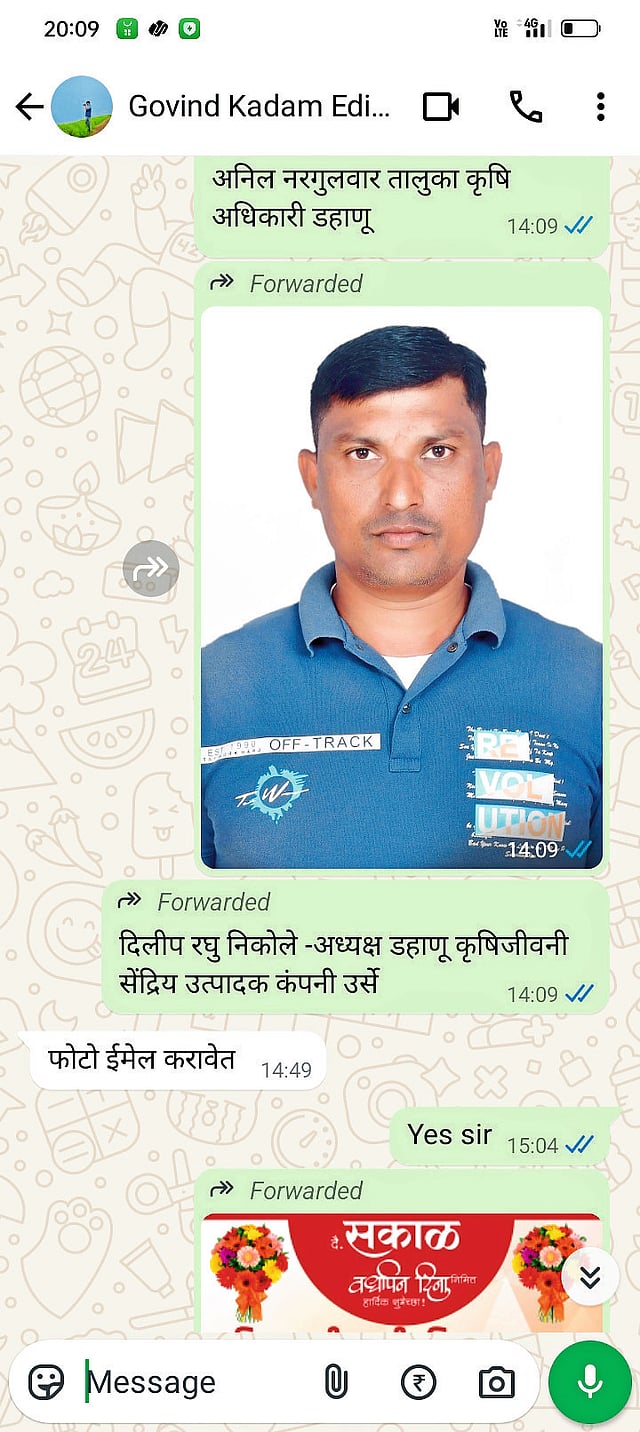 - दिलीप निकोले, अध्यक्ष, डहाणू कृषिजीवनी सेंद्रिय उत्पादक कंपनी, उर्से