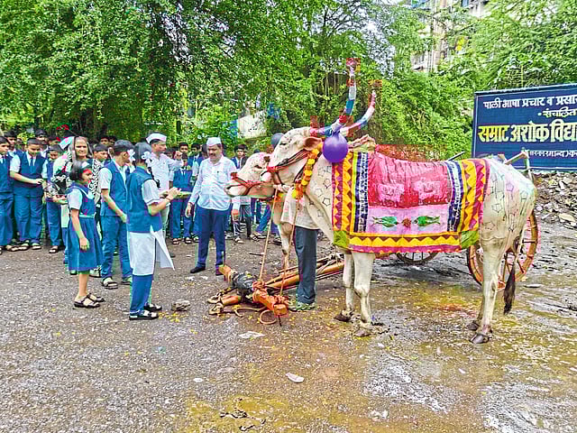 वज्रेश्वरी : सम्राट अशोक शाळेत बैलपोळ्याचा उत्सव विद्यार्थ्यांनी अनुभवला.