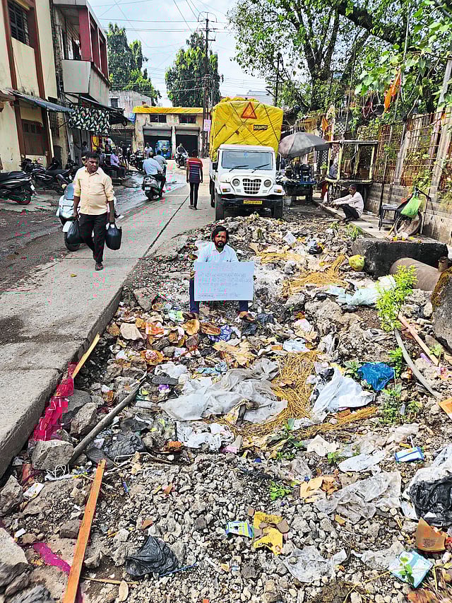 उल्हासनगर : मनसेचे पदाधिकारी योगीराज देशमुख यांनी खड्ड्यामध्ये बसून प्रतीकात्मक आंदोलन केले.