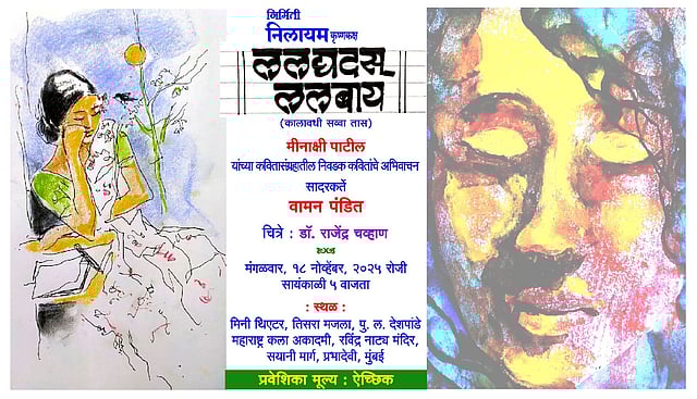 कवयित्री , चित्रकार डॉ.मीनाक्षी पाटील यांच्या ‘ललद्यदस् ललबाय’ या काव्यसंग्रहातील निवडक कवितांचे अभिवाचन ' हा कार्यक्रम मंगळवार, मंगळवारी, 18 नोव्हेंबर, रोजी सायंकाळी 5 वाजता मिनी थिएटर, तिसरा मजला, रवींद्र नाट्यमंदिर इमारत, प्रभादेवी, मुंबई येथे आयोजित करण्यात आला आहे.