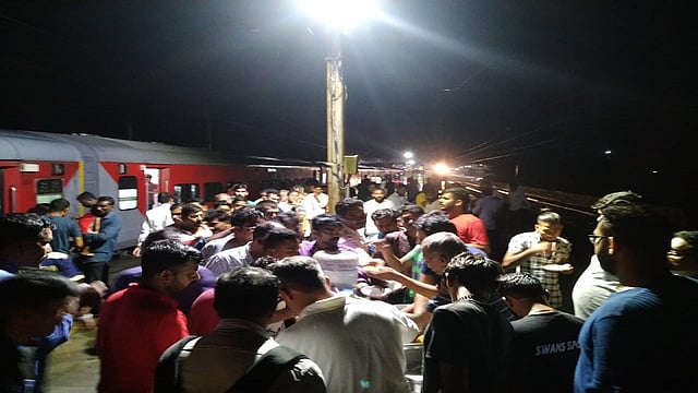 पालघर ः पावसामुळे केळवे रोड स्थानकात अडकून राहिलेल्या प्रवाशांना गावातील नागरिकांनी मदतीचा हात देत त्यांच्या खाण्या-पिण्याची व्यवस्था केली.