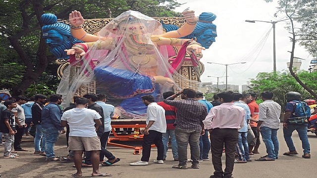 परिसरातील सर्वच प्रमुख मंडळांच्या बाप्पांचे आगमन दरवर्षीप्रमाणे गणेश चतुर्थीच्या एक दिवस अगोदरच झाले. गणेशमूर्ती मंडपात आणल्यानंतर राहिलेल्या सजावटीवर शेवटचा हात फिरवता यावा याकरिता ही तजवीज दरवर्षी केली जाते. रविवारीदेखील मध्यरात्रीपासूनच अनेक मंडळांनी गणेशमूर्ती घडवणाऱ्या मूर्तिकारांच्या कार्यशाळेतून मूर्ती मंडपाकडे घेऊन जाण्यास सुरुवात केली होती.