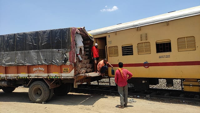 नांदेड : नांदेड रेल्वे विभागातील नगरसोल (Nagarsol) येथून १५० वी किसान रेल्वे २४६ टन कांदा घेवून पश्चिम बंगाल येथील मालडा टाऊन येथे सोमवारी (ता. १०) रवाना झाली. नांदेड रेल्वे (Nanded rail) विभागातून या वर्षी ता. पाच जानेवारी, २०२१ रोजी सुरु केलेल्या किसान रेल्वेने मोठा पल्ला गाठला आहे. फक्त १२६ दिवसात १५० किसान रेल्वेने नगरसोल येथून देशाच्या विविध भागात कांदा, द्राक्षे आणि टरबूज पोहोचविले आहे. किसान रेल्वेने वाहतूक केल्यामुळे वाहतूक दरात ५० टक्के सूट देण्यात येत आहे. अनेक शेतकरी, व्यापारी याचा लाभ घेत आहेत. फक्त १२६ दिवसात १५० किसान रेल्वे चालविल्याबद्दल विभागीय रेल्वे व्यवस्थापक उपिंदर सिंघ यांनी (divisional rail manager) अधिकारी आणि कर्मचारी यांचे अभिनंदन केले आहे. 150th Kisan Railway departs from Nagarsol; Increase in transportation of agricultural commodities