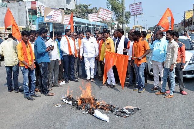 अर्धापूर ( जिल्हा नांदेड) : दिल्लीत सुरु आसलेल्या शेतकरी आंदोलना बाबत केंद्रीय राज्यमंत्री रावसाहेब दानवें यांनी वादग्रस्त वक्तव्य केले. याचे पडसाद अर्धापूर शहरांत उमटले असून जिल्हा परिषद सदस्य बबन बारसे यांच्या नेतृत्वाखाली आंदोलन करून दानवेंचा पुतळा जाळून निषेध करण्यात आला. तसेच या चितावणीखोर वक्तव्या बद्दल देशातील तमाम शेतक-यांची माफी मागावी अशी मागणी करण्यात आली.
