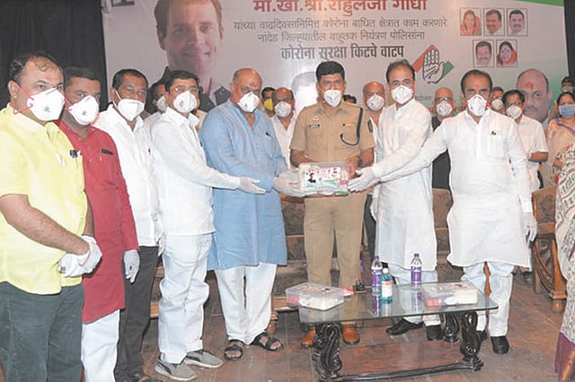 नांदेड - काँग्रेसचे राष्ट्रीय नेते अध्यक्ष खासदार राहुल गांधी यांच्या वाढदिवसानिमित्त काँग्रेसचे नेते सार्वजनिक बांधकाम मंत्री अशोक चव्हाण यांच्या मार्गदर्शनाखाली नांदेड जिल्हा काँग्रेस समितीच्या वतीने शुक्रवारी (ता. १९) कोरोनाशी रात्रंदिवस लढणाऱ्या पोलिस दलाच्या शहर वाहतूक शाखेतील पोलीस अधिकारी व कर्मचाऱ्यांचा सन्मान करून त्यांना सुरक्षा किटचे वाटप करण्यात आले.