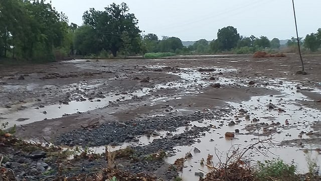 मुक्रमाबाद, (ता.मुखेड, जि. नांदेड) ः मॉन्सूनपूर्व अवकाळी पाऊस पडल्यामुळे ऐन पेरणीच्या काळात वेळेवर पाऊस पडणार की नाही, या चिंतेत शेतकरी होता. पण मान्सूनला सुरवात होताच शेतकऱ्यांवर कृपा दाखवत विजेच्या कडकडाटांत वादळी वाऱ्यासह तब्बल तीन तास मनसोक्त बरसला. या मुसळधार पावसामुळे शेतातील उभ्या पिकांसह माती खरडून जाऊन शेतीला नाल्यांचे स्वरूप प्राप्त झाल्यामुळे ऐन पेरणीच्या तोंडावर शेतीचे मोठे नुकसान झाले आहे.