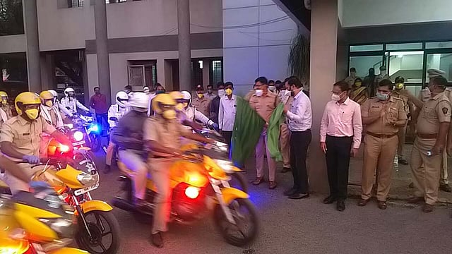 नांदेड : शहरात कोरोनाचा वाढता प्रादूर्भाव व मनुष्यबळाची कमतरता लक्षात घेता कमी कर्मचाऱ्यांवर बंदोबस्ताचा ताण पडू नये व त्यांच्या सुरक्षेसाठी मुख्यालयातील ४५ दुचाकी कोवीड पेट्रोलींगसाठी सज्ज केल्या आहेत. सायरन, पीएसी आणि माईक यंत्रणा, अंबर दिवे, जिल्हाधिकारी, पोलिस अधीक्षक आणि महापालिका आयुक्त यांचे नागरिकांना आवाहनाचे ध्वनीफीत असलेल्या या दुचाकी कन्टेनमेन्ट झोनसह संपूर्ण शहरात गस्त घालणार आहेत. या दुचाकींना जिल्हाधिकारी डॉ. विपीन आणि पोलिस अधीक्षक विजयकुमार मगर आणि महापालिका आयुक्त डाॅ. सुनिल लहाने यांनी मंगळवारी (ता. १९) सायंकाळी सात वाजता हिरवी झेंडी दाखविली. यानंतर शहरातून दुचाकी फेरी काढण्यात आली.