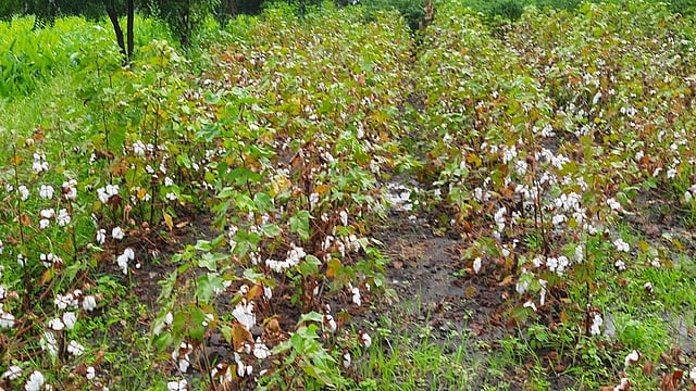नांदेड जिल्ह्यात पुन्हा पडलेल्या पावसामुळे वेचणीला आलेल्या कापसाच्या वात्या झाल्या. उभे तसेच कापून ठेवलेल्या ज्वारी व सोयाबीनचे नुकसान झाले. जिल्ह्यात सप्टेंबरमध्ये झालेल्या अतिवृष्टी तसेच पुरामुळे तब्बल एक लाखाहून अधिक हेक्टरवरील खरीप पिकांचे नुकसान झाले होते. यानंतर शेतकऱ्यांनी शिल्लक असलेल्या सोयाबीन, ज्वारी या पिकांची कापणी करुन मळणी करत असताना रविवारी (ता. ११) पाऊस पडला. सोमवारी (ता. १२) देखील जिल्ह्यातील अनेक भागात पावसाने हजेरी लावली.