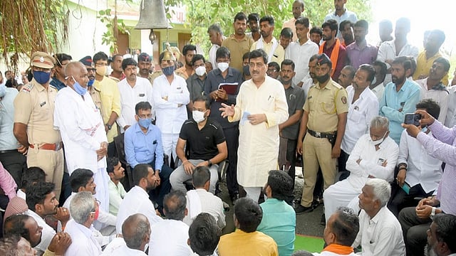 अर्धापूर (जि.नांदेड) : जिल्ह्यातील ३५ मंडळांत अतिवृष्टी झाली असून पिकांचे नुकसान झाले आहे. शेतकऱ्यांच्या पाठीशी शासन खंबीरपणे उभे आहे, असा विश्वास पालकमंत्री तथा सार्वजनिक बांधकाम मंत्री अशोक चव्हाण यांनी शुक्रवारी (ता.दहा) अर्धापूर (Ardhapur) तालुक्यातील शेतकऱ्यांना दिला. तालुक्यात झालेल्या संतधार पावसामुळे शेतीचे खूप मोठे नुकसान झाले असून हातातोंडाला आलेला घास निसर्गाने हिरावून नेला आहे. तालुक्यात झालेल्या नुकसानीची पाहणी करून पालकमंत्री अशोक चव्हाण (Ashok Chavan) यांनी शेतकऱ्यांशी संवाद साधून दिलासा दिला. तालुक्यात मुसळधार पावसामुळे खरिपाच्या पिकांचे (Kharip Crops) मोठे नुकसान झाले आहे. पिके पाण्याखाली गेली व शेती खरडून गेली आहे. शेतीचे नुकसान झाल्याने शेतकरी हवालदिल झाला आहे.