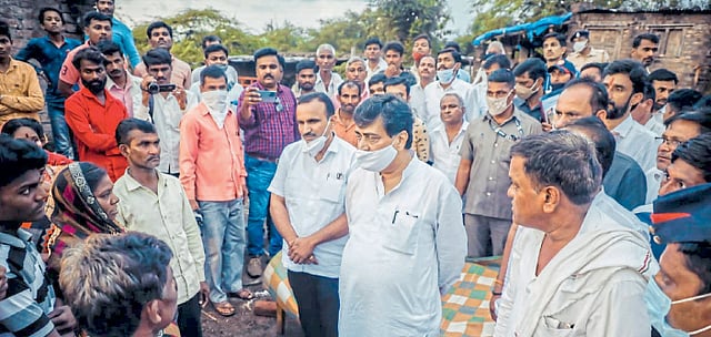 पालकमंत्री चव्हाण यांच्यासोबत आमदार मोहन हंबर्डे, तालुकाध्यक्ष बालाजी गव्हाणे, शहराध्यक्ष राजू शेटे, प्रवीण देशमुख, पप्पू कोंडेकर आदी पदाधिकारी उपस्थित होते. पिंपळगाव महादेव, बेलसर, लोणी, लहान, आंबेगाव आदी गावातील नागरिकांनी, लोकप्रतिनिधी व शेतकऱ्यांनी आपल्या व्यथा मांडून तातडीने मदत देण्याची मागणी केली. तसेच ही मदत सरसकट देऊन शेतकऱ्यांना दिलासा देण्यात यावा, अशी मागणी केली. यावेळी आनंद कपाटे, आनंदराव पाटील बेलसरकर, संजय लोणे, अमोल इंगळे, शेख महेबुब, डॉ. उत्तम इंगळे, सुधाकर इंगळे, सतीश देशमुख लहानकर, कपील दुधमल, उपसरपंच उध्दव कल्याणकर, सदाशिवराव देशमुख, संतोष कल्याणकर, वसंतराव देशमुख, आदी पदाधिकारी यांनी शेतकऱ्यांना तातडीने मदत देण्याची मागणी केली.
