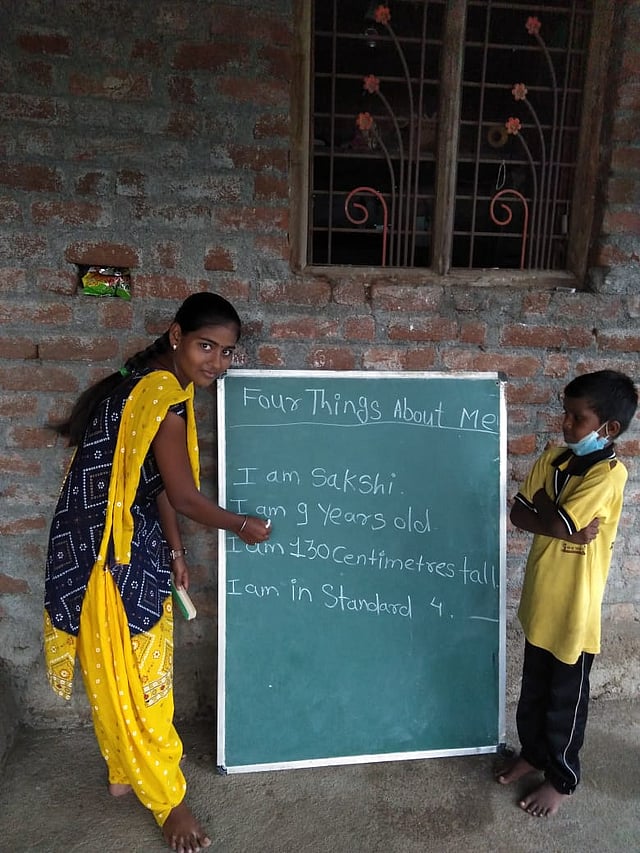 वाई बाजार (जिल्हा नांदेड) : ऑनलाईन शिक्षणात येणारे अनेक अडथळे सोडविणे एकदम शक्य नसल्याने ती पद्धत बहुतेक ग्रामीण भागात व डोंगरी गावांमध्ये किचकट ठरत आहे. मात्र माहूर पंचायत समितीमध्ये येणारे रूपानाईक तांडा या गावात ज्ञानाचे धडे विद्यार्थी गिरवत आहेत. गावात शालेय मुलांसाठी जिल्हा परिषद शाळा रूपानाईक तांडा येथील एक माजी विद्यार्थीनी धनश्री मुरली पवार सद्धस्थितीत स्वयंप्रेरणेने ‘शिक्षक मित्र’ या संज्ञेला सार्थ ठरवत शालेय विद्यार्थ्यांना नियमित व शालेय मुख्याध्यापकांच्या सुचनांचं पालन करत व सोशल डिस्टंसिंगचे पालन करत ज्ञानदानाचे कार्य करत आहे. जी खरोखरच वैशिष्ट्यपूर्ण बाब ठरली आहे.