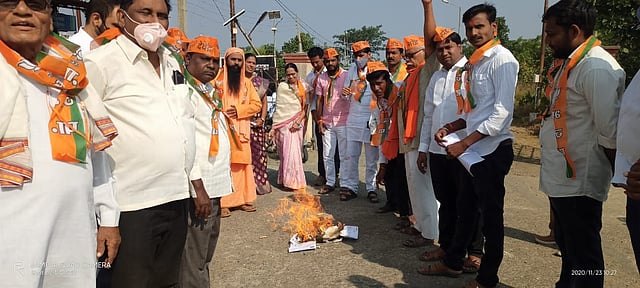 उमरीतील तळेगाव येथे भाजपाच्या कार्यकर्त्यांनी केली विजबिलाची होळी
