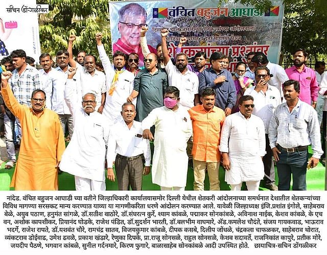 यावेळी वंचित बहुजन आघाडीच्या पदाधिकारी कार्यकर्त्यांनी मोठ्या संख्येने सहभाग घेतला होता. शेतकरी विरोधी कायदे रद्द करा, केंद्र सरकार मुर्दाबाद, या घोषणांनी संपूर्ण परिसर दणाणला होता. यावेळी वंचित बहुजन आघाडीच्या प्रमुख पदाधिकाऱ्यांनी या कायद्याच्या विरोधात व शेतकऱ्यांच्या समर्थनार्थ आपल्या भूमिका मांडल्या. तदनंतर जिल्हाधिकारी नांदेड यांना मागण्याचे निवेदन देण्यात आले. या निवेदनात महाराष्ट्रातील आघाडी सरकार मधील सर्व पक्षांनी शेतकरी आंदोलनाला पाठिंबा दिला आहे. महाआघाडी ही भूमिका प्रामाणिक असेल तर महाराष्ट्र सरकारने महाराष्ट्रातील शेतकरीविरोधी कृषी उत्पन्न बाजार समितीच्या कायद्यात दुरुस्ती करणारा अध्यादेश ताबडतोब काढावा व विधानसभेच्या हिवाळी अधिवेशनात शेतकऱ्यांच्या शेतमालाला किमान आधारभूत किंमत हमीभाव मिळण्यासाठी कायद्यात स्पष्ट तरतूद करावी आणि त्याची कठोर अंमलबजावणी करावी, शेतमालाची वाहतूक करण्यासाठी मुख्यता भारतीय रेल्वेचा वापर होतो.