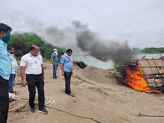 नांदेड : जिल्ह्यातील लॉकडाउनचा फायदा घेत वाळू माफियानी हैदोस घातला आहे. दोन ठिकाणी वाळू माफियांनी हल्ले करून पोलिसांसह सामान्य नागरिकांना ठार मारण्याचा प्रयत्न केला. या वाळू माफियांची मुजोरी वाढत असल्याच्या तक्रारी जिल्हाधिकारी डॉ. विपीन आणि पोलिस अधीक्षक विजयकुमार मगर यांच्याकडे आल्या. त्यानंतर या वाळू माफियांच्या मुसक्या आवळण्यासाठी सयुंक्त कारवाई करण्यात आली. ही कारवाई ब्राम्हणवाडा (ता. नांदेड) येथील गोदावरी पात्रात सोमवारी (ता. २२) केली.