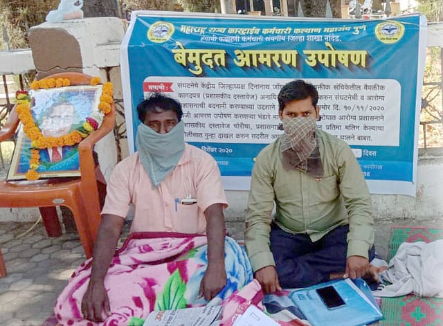 नांदेड- जिल्हा परिषद नांदेडच्या आरोग्य विभागातील कार्यरत आरोग्य कर्मचारी व कास्ट्राईब संघटनेचे केंद्रीय जिल्हाध्यक्ष दिनानाथ जोंधळे यांच्या वैयक्तिक संचिकेतील महत्वाची कागदपत्रे (प्रशासकीय दस्तावेज) सामान्य प्रशासन विभागाच ता. 17 आॅक्टोबर 2014 च्या परिपत्रकान्वये बाह्य व्यक्तीला संबंधीत कर्मचार्याच्या सहमतीशिवाय देता येत नसतांना भंडारे नावाच्या व्यक्तीने अनधिकृतरित्या हस्तगत करून कास्ट्राईब संघटनेच्या जिल्हाध्यक्षाविरूद्ध व आरोग्य प्रशासनविरूद्ध ता. 10 नोव्हेंबर रोजी आमरण उपोषण करून संघटनेची व आरोग्य प्रशासनाची बदनामी करून प्रतिमा मलीन केल्याचा व प्रशासकीय दस्तावेज चोरीचा गुन्हा दाखल करण्याच्या मागणीसाठी कास्ट्राईबह संघटनेच्या हंगामी फवारणी कर्मचारी संवर्ग शाखेच्यावतीने ता. सात डिसेंबरपासून जिल्हा परिषदेसमोर बेमुदत आमरण उपोषण सुरू आहे.