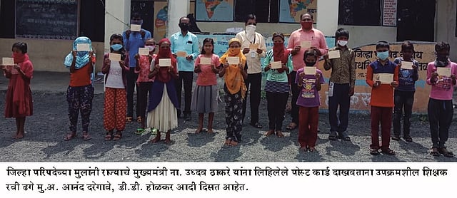 गेल्या अनेक महिन्यांपासून कोरोनामुळे शाळा बंद आहेत. शासनाच्या वतीने शाळा बंद, पण शिक्षण सुरू हे या अंतर्गत मोबाईल, दीक्षा अप, टिली-मिली व आमच्या शाळेच्या वतीने घरचा अभ्यास ह्या स्वाध्याय पुस्तिका आदींच्या माध्यमातून मुले शिक्षण घेत आहेत. परंतु मोबाईलमुळे व टीव्हीमुळे मुलांचे डोळे, डोके दुखत आहे, जास्त बैठे काम करून त्यांना आता कंटाळा आला, घरी सुध्दा करमत नाही, त्यामुळे शासनाने आता लवकरच शाळा सुरू करावी, आम्हाला शाळेत येऊ वाटत आहे, असे भावनिक आवाहन मुलांनी पोस्ट कार्डच्या माध्यमातून मुख्यमंत्री उद्धव ठाकरे यांना केले आहे. यावेळी शाळेचे मुख्याध्यापक आनंद दरेगावे, डी. डी. होळकर, रमेश हणमंते हे उपस्थित होते.