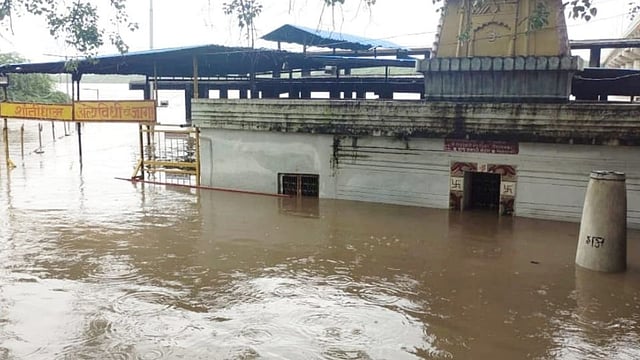 गोदावरी नदीवरील डॉ. शंकरराव चव्हाण विष्णुपुरी प्रकल्पाचे मंगळवारी दुपारी साडेतीन वाजेपर्यंत बारा दरवाजे उघडण्यात आले आहे. त्यातून एक लाख ५६ हजार ३७० क्युसेक्स पाण्याचा विसर्ग गोदावरी नदीपात्रात करण्यात येत आहे. त्यामुळे गोदावरी नदी दुथडी भरून वाहत असून जुन्या नांदेडमधील नावघाट येथील संत दासगणू पूल पाण्याखाली गेला आहे. गोवर्धन घाट येथील शांतीधाम स्मशानभूमी देखील पाण्याखाली गेली आहे. मंगळवारीही कमी अधिक प्रमाणात शहर व जिल्ह्यात अनेक ठिकाणी जोरदार पावसाच्या सरी कोसळत आहेत.