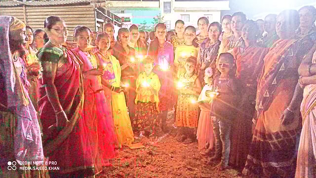 वाई बाजार (जि.नांदेड) - बंजारा समाजातील प्रतिष्ठित नाईक व कारभारी यांच्या मार्गदर्शनाखाली वाई बाजार येथील संत सेवालाल महाराज व आई जगदंबा देवी मंदिरात लक्ष्मीपूजना नंतर मुलींनी हातात दिवे घेऊन ‘वरसे धनेर कोट दवाळी...बापू तोन मेरा’ हे पारंपरिक लोकगीत म्हणत प्रथम देवाला नंतर आई वडिलांना व समाजातील प्रतिष्ठित वडीलधाऱ्या व्यक्तींना ‘मेरा’ अर्थात देणगी मागून दीपावली उत्साहात साजरा केला....