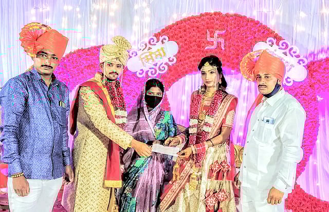 अर्धापूर तालुक्यातील सावरगाव येथील प्रहार जनशक्ती पक्षाचे तालुकाप्रमुख छगन पाटील सांगोळे यांची बहिण सीमा ही मुंबई, दादर येथे पोलिस विभागात कार्यरत आहे. तिचा विवाह कुंभारवाडी (ता. गेवराई, जिल्हा बीड ) येथील धारावी, मुंबई येथे पोलिस उपनिरीक्षक पदावर कार्यरत असलेल्या अंकुश जाधव यांच्याशी गुरुवारी (ता. २२) झाला. कोरोनाच्या पार्श्वभूमीवर खबरदारी घेत कमी लोकांच्या उपस्थित हा विवाह पार पडला. विवाहात अवाजवी खर्चाला फाटा देत अल्पभूधारक निराधार शेतकरी कुटुंबात अंकिताच्या लग्नास दिली आर्थिक मदत दिली.