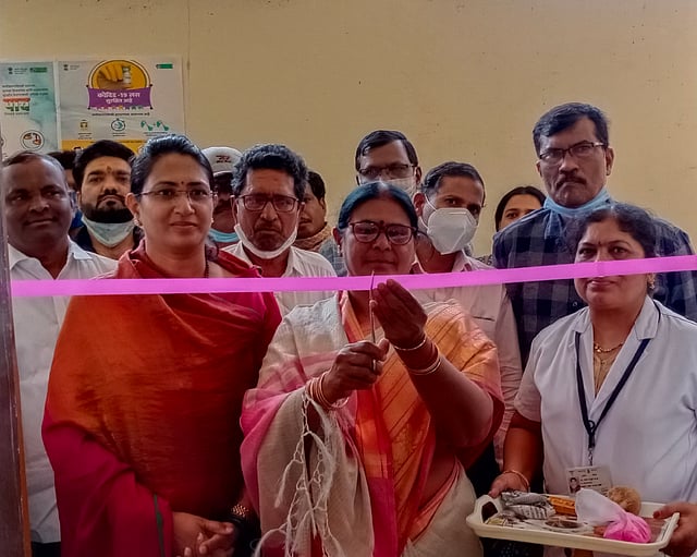 धर्माबाद (जि. नांदेड) : शहरातील ग्रामीण रुग्णालयात गुरुवारी (ता.२८) रोजी दुपारी एक वाजता कोरोना लसीकरणाचा शुभारंभ जिल्हा परिषद सदस्या पुनमताई पवार यांच्या प्रमुख उपस्थितीत जिल्हा परिषदेच्या उपाध्यक्षा पद्मा सतपलवार यांच्या हस्ते रिबीन कापून करण्यात आला. पहिल्या टप्प्यात आरोग्य विभागाच्या २५७ आरोग्य कर्मचाऱ्यांना लस देण्यात येणार असून गुरुवारी १०३ कोरोना योद्धांनी लस घेतली आहे. ही लस सुरक्षित असल्याचे सांगून आम्ही लस घेतली; तुम्ही पण घ्या, असे आवाहन या कोरोना योद्धांनी केले आहे.
