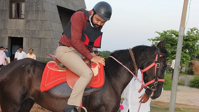 सगरोळी, (ता.बिलोली, जि. नांदेड) ः सकाळी नांदेड येथील कार्यालयातील बैठक, प्रवास व वाळू घाटांची पाहणी करून संस्था संकुलात आल्यानंतर जिल्हाधिकारी थकले असतील, फारसा वेळ देणार नाहीत असे वाटले. परंतु, सैनिकी विद्यालयातील अश्वशाळा व तेथील आकर्षक घोडे पाहिल्यानंतर त्यांना घोडेस्वारीचा मोह आवरला नाही. सुमारे तीन तास संस्थेतील विविध प्रकल्प पाहिल्यानंतरही त्यांनी आवर्जून येथील सनराईज मैदानावर घोडेस्वार होऊन आनंद लुटला.