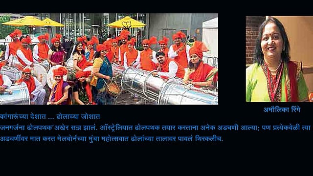"जनगर्जना ढोलपथक' अखेर सज्ज झालं. ऑस्ट्रेलियात ढोलपथक तयार करताना अनेक अडचणी आल्या; पण प्रत्येकवेळी त्या अडचणींवर मात करीत मेलबोर्नच्या मुंबा महोत्सवात ढोलांच्या तालावर पावलं थिरकलीच.