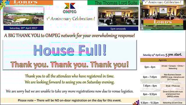 जसं मुंबई आणि ताज चे एक अतूट नातं आहे, तसचं काहीसं लंडन आणि लॉर्डस क्रिकेट मैदानाचं आहे. OMPEGच्या पहिल्या वर्धापन सोहळ्यासाठी लॉर्डस हेच सगळ्यात समर्पक स्थळ आहे. माजी क्रिकेटपटू व आर्थिक सल्लागार, श्री मधु गुप्ते मेरिलबोन क्रिकेट क्लबचे सदस्य असल्यामुळे पहिला वर्धापन दिन आणि चर्चासत्रासाठी हे प्रतिष्ठित स्थळ निश्चित करण्यात त्यांचा मोठा हातभार लाभला!