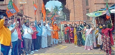 भाजपचे शहर जिल्हाध्यक्ष दीपकबाबा शिंदे, महिला आघाडी जिल्हाध्यक्षा नगरसेविका ऍड. स्वाती शिंदे आणि अध्यात्मिक आघाडीचे जिल्हा संयोजक अजयकुमार वाले यांच्या नेतृत्वाखाली हे आंदोलन झाले. कोरोनाच्या पार्श्वभूमीवर सरकारने सुमारे तीन महिने लॉकडाऊन केले होते. त्यानंतर टप्प्याटप्प्याने अनलॉक करताना सरकारने दुकाने, हॉटेल्स, बसेस, रेल्वे या सार्वजनिक सुविधा सुरु केल्या आहेत.