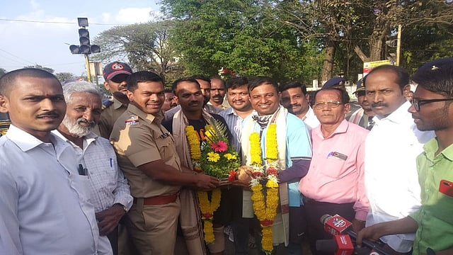 गुरुवारी (ता.5) सायंकाळी त्यांचे कऱ्हाडमध्ये जंगी स्वागत करण्यात आले. येथील विजय दिवस चौकातील विजय स्तंभास जवानांनी पुष्पहार अर्पण करून अभिवादन केले. त्यानंतर त्यांचे पोलिस उपनिरीक्षक कांबळे, हवालदार श्री. करांडे, विजय दिवस समितीच्या वतीने चंद्रकांत जाधव, समितीचे सहसचिव विलासराव जाधव, ऍड. परवेज सुतार, श्री. चौधरी, ग्रामस्थ व जवानांच्या वतीने गजानन हुलवान, देवानंद हुलवान, विठ्ठल हुलवान, दादासाहेब मंडले, शामराव मदने, संभाजी चव्हाण, काकासाहेब बोडरे, हनीप शिकलगार व सहकाऱ्यांच्या वतीने त्यांचा सत्कार करण्यात आला. या वेळी जिलेबी वाटप करून त्यांना पुढील वाटचालीस शुभेच्छा देण्यात आल्या.