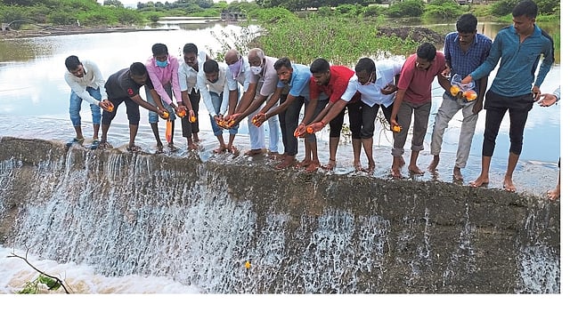 पाण्याने करगणी, माळेवाडी आणि शेटफळे ओढ्यावरील बंधारे तुडुंब भरून वाहू लागले आहेत. मागणीची दखल घेतल्यामुळे राष्ट्रवादीच्या युवक कार्यकर्त्यांनी पाण्याचे पूजन केले. राष्ट्रवादी युवकचे तालुका अध्यक्ष सुरज पाटील, शेटफळचे अध्यक्ष किशोर गायकवाड, प्रा. संभाजी पाटील, माजी उपसरपंच प्रकाश गायकवाड, महेश जवळे यांच्यासह अनेक जण उपस्थित होते.