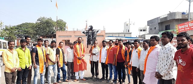 सोलापूर : संभाजी ब्रिगेडच्यावतीने जुळे सोलापुरात कल्याण नगर येथील दत्त मंदिर परिसरात वादग्रस्त लेखक जयभगवान गोयल यांनी लिहीलेल्या पुरस्तकाविरोधात आंदोलन करण्यात आले. लेखकाच्या प्रतिकात्मक पुतळ्याचे काळे फासून व्यक्त करण्यात आला.