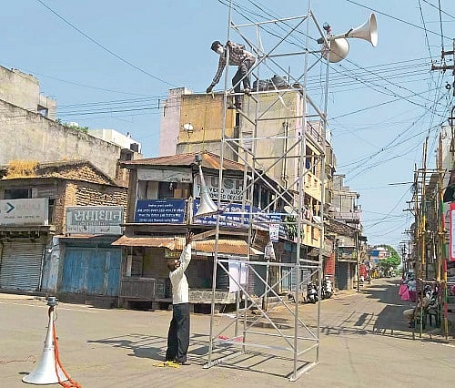 29 ते 31 मार्च दरम्यान शहर पूर्ण लॉकडाऊन केले असताना कोरोनाबधित परिसरात वीस फूट उंचीचे दोन मनोरे उभारले होते. चार स्पीकर बसवून त्याद्वारे लोकांचे प्रबोधन, जागरुकतेविषयी मार्गदर्शन, भजन आदींचा वापर करून लोकांच्या मनातून भीती निघून जावी, यासाठी प्रयत्न केले जात होते. लोकांमध्ये त्यामुळे समाधानकारक भावना होत्या. मात्र या स्पीकरचा 'राजकीय' वापर होत असल्याचे निदर्शनास आल्यानंतर सावधगिरी म्हणून हे स्पीकरच काढून टाकण्याचा निर्णय पोलिसांनी घेतला आहे.