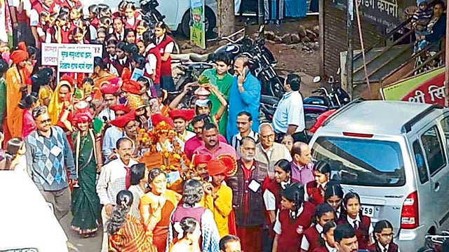 जिल्हा परिषदेच्या येथील केंद्र शाळेतून ग्रंथदिंडीचा प्रारंभ झाला. शाळेतील विद्यार्थिनी गौरी सुतार हिच्या हस्ते पालखीतील ग्रंथांची पूजा करण्यात आली.