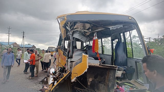 अथणी, ता. २० : अथणी येथे कॉलेज बस-टेम्पो यांच्यात भीषण अपघात झाला. त्यात दोन्ही वाहनांचे चालक जागीच ठार झाले. मिरज-विजापूर रस्त्यावर शनिवारी (ता. २०) सकाळी साडेसात वाजण्याच्या सुमारास हा भीषण अपघात झाला. त्यात वीस विद्यार्थिनी जखमी असून पाच गंभीर जखमींना मिरज येथे हलविण्यात आले आहे. रघुनाथ औताडे (वय 40, रा. कोडगनूर, ता. अथणी) असे मयत बस चालकाचे तर मलिकसाहेब मुजावर (वय 23, कलमडी ता. तिकोटा, जि. बागलकोट) असे टेम्पो चालकाचे नाव आहे. (Belgaum Athani Collage Bus Accident Several Student Injured)