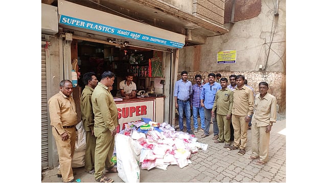 बेळगाव : प्लास्टिक बंदी आदेशाची जोरदार अंमलबजावणी बेळगाव महापालिकेने सुरू केली आहे. सोमवारी (ता.३) महापालिकेच्या आरोग्य विभागाने शहराच्या मध्यवर्ती भागात कारवाई करून तब्बल एक टन प्लस्टिक जप्त केले. या कारवाईत ५ घाऊक तर ७ किरकोळ प्लास्टिक विक्रेत्यांच्या अस्थापनांवर छापे टाकले.