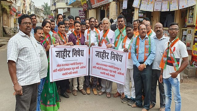 जिल्हाध्यक्ष विक्रम पावसकर व पदाधिकाऱ्यांनी आज शनिवारी कऱ्हाड (जि.सातारा) येथे घोषणाबाजी करत राहूल गांधी यांचा निषेध नाेंदविला. भाजपच्या पदाधिकाऱ्यांच्या उपस्थितीत झालेल्या या आंदोलनास नगराध्यक्षा रोहिणी शिंदे, भाजपचे शहराध्यक्ष एकनाथ बागडी, घनश्याम पेंढारकर, मुकुंद चरेगावकर, प्रशांत कुलकर्णी, नितीन वास्के, उमेश शिंदे, रुपेश मुळे, प्रमोद शिंदे, राहुल भिसे यांच्यासह पदाधिकारी, कार्यकर्ते उपस्थित होते.