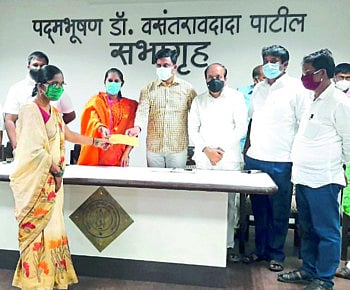 सांगली- कोरोनाच्या काळात जीव धोक्यात घालून काम करताना मृत झालेल्या महापालिकेच्या कर्मचाऱ्यांच्या वारसांना आज दहा लाखाचे सानुग्रह अनुदानाचे वाटप महापौर गीता सुतार, आयुक्त नितीन कापडणीस यांच्या उपस्थितीत करण्यात आले.