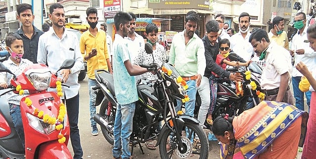यंदाच्या दसऱ्याला ऑटोमोबाईल क्षेत्राला बुस्टर मिळाल्याचे चित्र दिसून आले. पाच महिन्यांनंतर दसऱ्याच्या मुहूर्तावर ग्राहकांनी चांगलाच प्रतिसाद दिल्याचे समाधान वितरकांनी व्यक्त केले. कोट्यवधींची उलाढाल या क्षेत्रात झाली. "सिद्धिविनायक हिरो' आणि "सिद्धि व्हिल्स्'चे संचालक श्रीकांत तारळेकर "सकाळ'शी बोलताना म्हणाले,""दुचाकीला यंदा मोठ्याप्रमाणावर मागणी असल्याचे दिसून आले. जिल्ह्यात सुमारे हिरोच्या 711 गाड्यांची विक्री एका दिवसात झाली. त्यात मोपेडसह साऱ्याच दुचाकीला चांगली मागणी होती. इतर कंपन्यांच्या दुचाकीलाही चांगली मागणी दिसून आली. सुमारे दीड ते दोन हजार दुचाकींची दिवसात विक्री झाली. चारचाकीला चांगली मागणी असल्याचे दिसले. पाचशेहून अधिक चारचाकीची विक्री झाली आहे. पाच महिन्यांनंतर प्रथमच मोठ्या प्रमाणावर उलाढाल झाली आहे.'' शेतकऱ्यांचा साथी असलेल्या ट्रॅक्टरची मोठ्या प्रमाणावर विक्री झाल्याचे दिसले. णमो ट्रॅक्टरचे संचालक जयकुमार बाफना म्हणाले,""सरकारी अनुदान आणि विविध ऑफर्समुळे ट्रॅक्टरची चांगली विक्री यंदा झाली. विविध कंपन्यांच्या सुमारे तीनशे ट्रॅक्टर एका दिवसात विक्रीचा अंदाज आहे.''